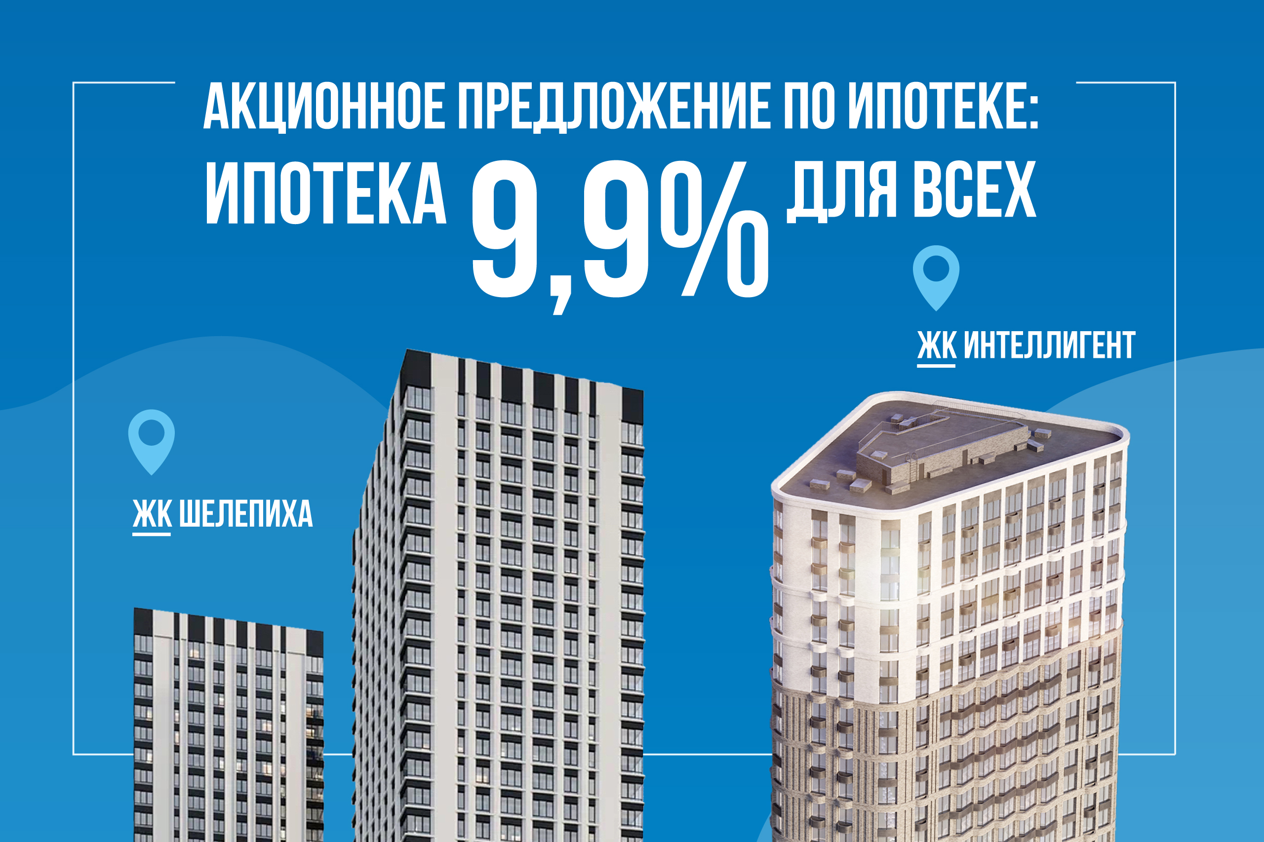 По проектам ЖК «Интеллигент» и ЖК «Шелепиха» действует акционное предложение «Ипотека 9,9% для всех!»